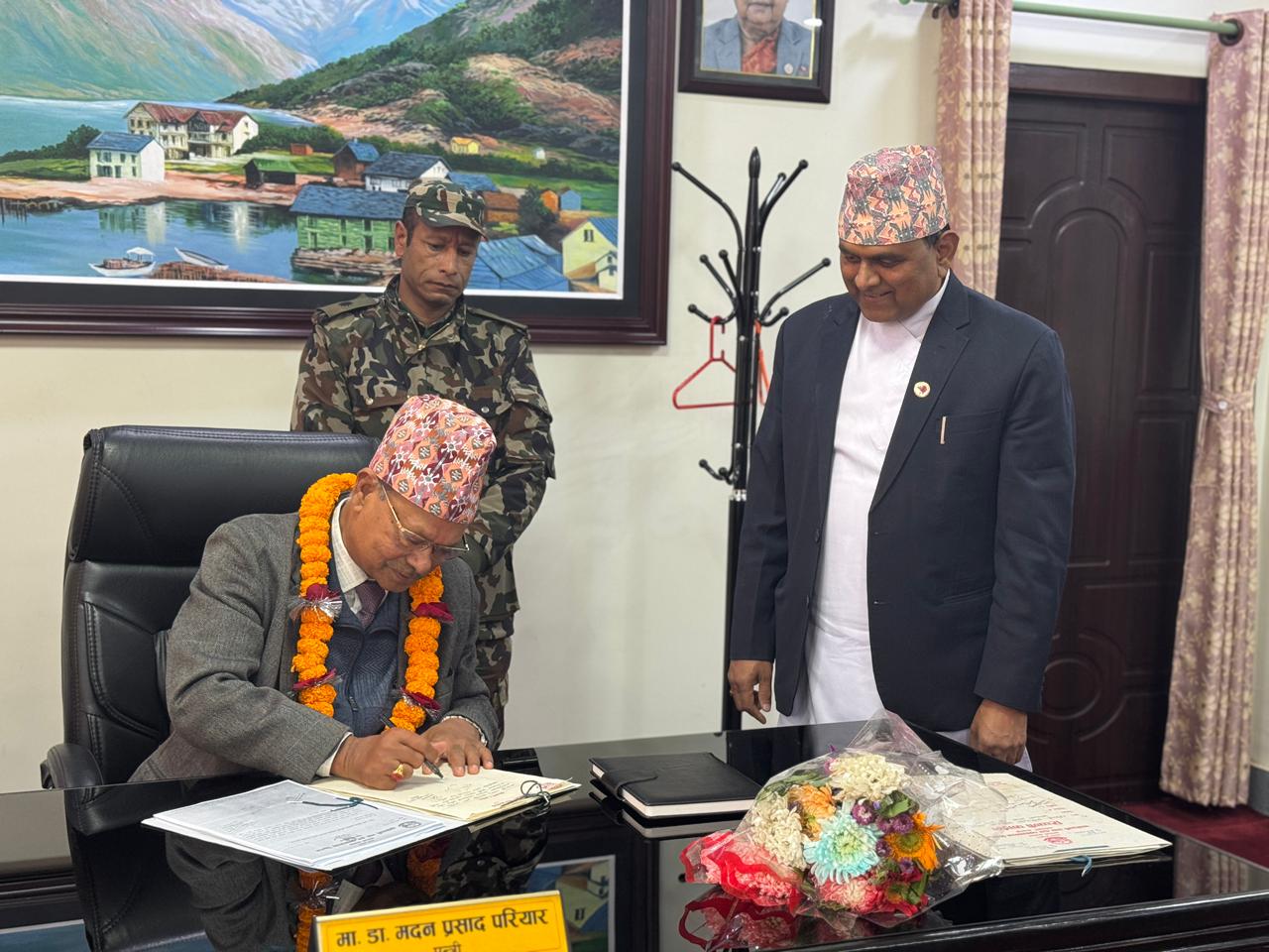 मा.खानेपानी मन्त्री डा. मदन प्रसाद परियारज्यूको पदभार ग्रहण ।